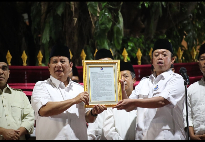 Kampiunnews I Jakarta – Bakal calon presiden (bacapres) Prabowo Subianto menerima deklarasi dukungan dari relawan pada dedengkot Pergerakan Mahasiswa Islam Indonesia (PMII) dan pemuda Nahdlatul Ulama (NU), Jagat Prabowo di Jalan Kertanegara no.4, Jakarta Selatan, Kamis (19/10).