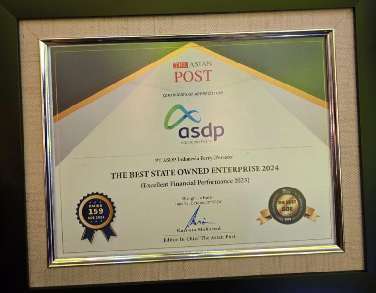 Kampiunnews | Jakarta – PT ASDP Indonesia Ferry (Persero) meraih penghargaan bergengsi dari The Asian Post (Infobank Media Group) dalam ajang “Rating 159 BUMN 2024” yang berlangsung di Jakarta, Kamis (3/10/2024). ASDP membuktikan keunggulannya sebagai pemain utama di sektor transportasi nasional dengan menempati peringkat ke-7 dalam daftar BUMN Terbaik versi Infobank 2024. Prestasi ini diiringi dengan pencapaian skor ‘Sangat Bagus’ sebesar 90,59%.