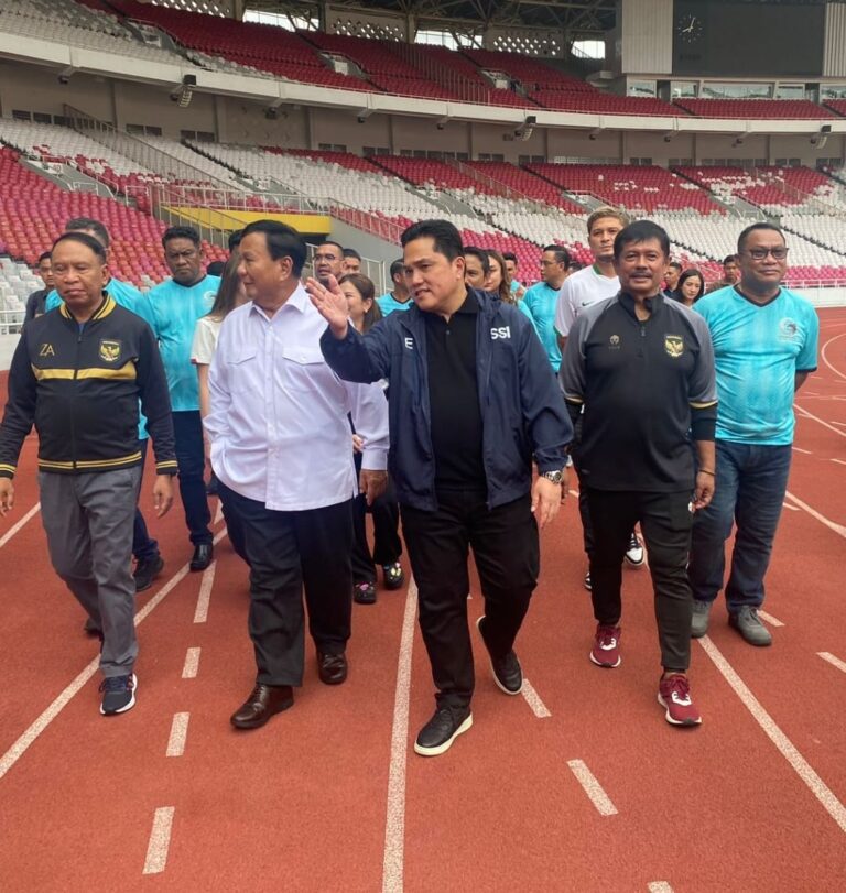 Selain itu, Prabowo sempat berkeliling melihat para pemain muda yang sedang berlatih di GBK. Dia juga terlihat sempat berbincang dengan pemain di lapangan.
