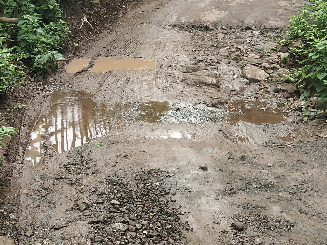 Akibatnya, di beberapa titik jalan sudah mengalami kerusakan parah dan terjadi genangan air, permukaan aspal yang mengelupas serta retakan terjadi di bagian tengah maupun pinggiran jalan.