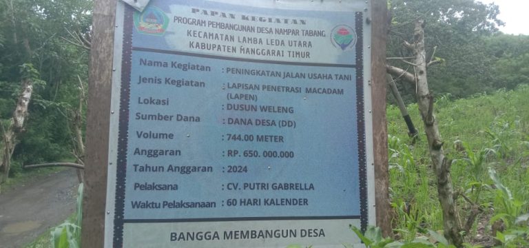 Menurut Nikolaus, proyek tersebut dikerjakan CV Putri Gabrella dengan waktu pelaksanaan selama 60 hari kalender. Proyek ini menelan anggaran sebesar Rp 650.000.000,00 (Enam Ratus Lima Puluh Juta Rupiah), bersumber dari Dana Desa Nampar Tabang Tahun Anggaran (TA) 2024.
