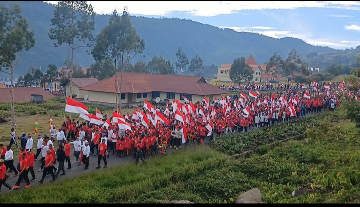 KampiunnewsIPuncak Jaya – Sejak pukul 07.00 Wit, ribuan masyarakat berkumpul di halaman Kantor Bupati Puncak Jaya. Mereka melaksanakan jalan santai dalam rangka Kirab Merah Putih yang di gelar oleh Pemerintah Daerah Puncak Jaya pada 5 Agustus .