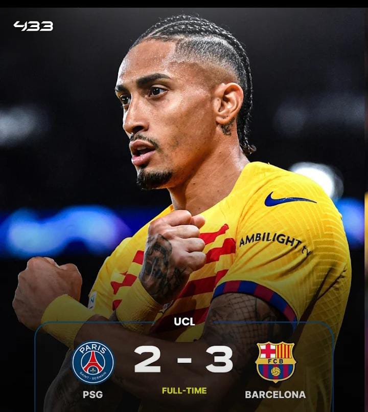 Barcelona berhasil unggul terlebih dahulu melalui gol Raphinha. Namun PSG sempat membalikkan kedudukan menjadi 2-1 berkat gol Ousmane Dembele dan Vitinha.