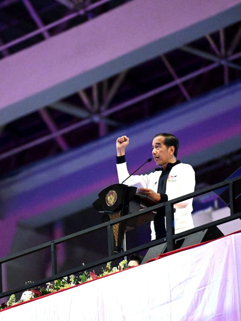 “Mari bertanding dalam suasana persaudaraan, dan berjuang dengan semangat sportivitas,” ujar Presiden.