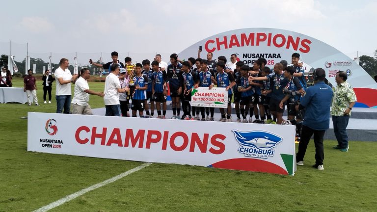 Kampiunnews|Bekasi – Turnamen Nusantara Open U-16 2025 resmi berakhir dengan laga final yang mempertemukan Chonburi FC Thailand melawan Dewa United Banten di Lapangan Garudayaksa Football Academy, Kabupaten Bekasi. Pada partai puncak tersebut, Chonburi tampil dominan dan meraih gelar juara setelah menang 6-1.