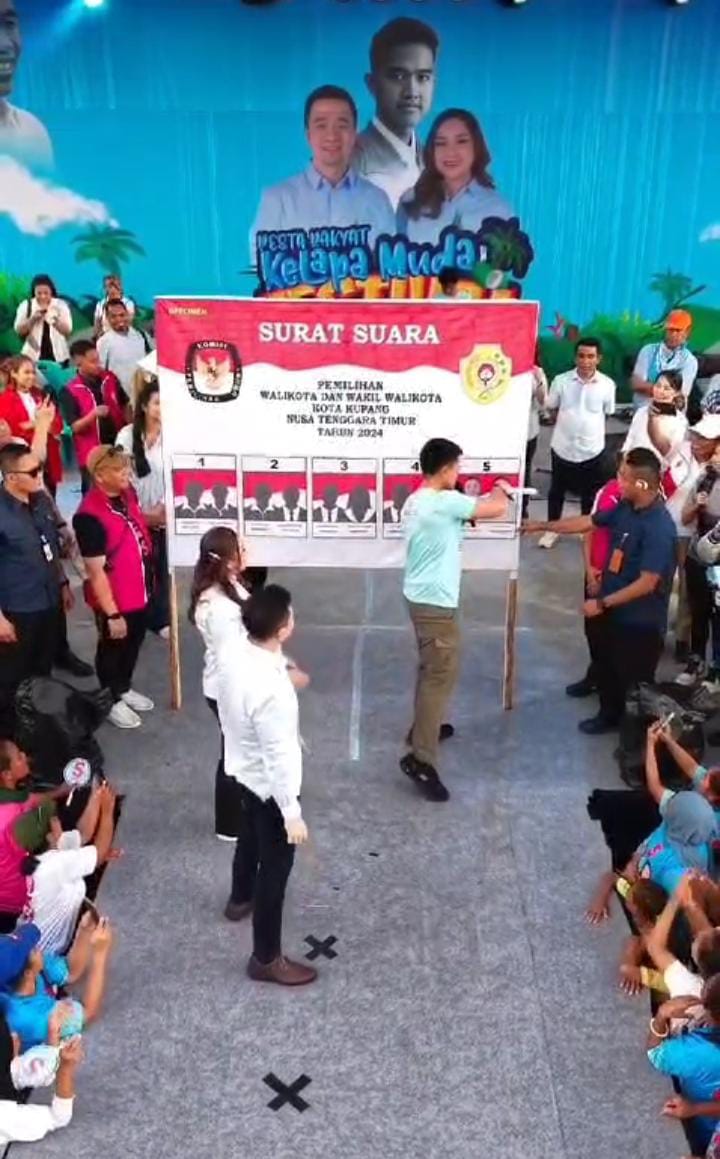 Kampiunnews | Kupang – Ketua Umum Partai Solidaritas Indonesia (PSI), Kaesang Pangarep, hadir dalam kampanye akbar pasangan calon Wali Kota dan Wakil Wali Kota Kupang nomor urut 5, dr. Christian Widodo dan Serena Francis. Kampanye bertema “Festival Pesta Rakyat Kelapa Muda” ini berlangsung di Alun-Alun Kota Kupang dan dihadiri oleh ribuan pendukung.