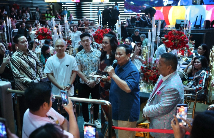 KampiunnewsIJakarta – Bakal Calon Presiden (Bacapres) Prabowo Subianto hadiri undangan perayaan ulang tahun Hotman Paris Hutapea ke-64, yang turut dipartisipasi oleh 600 anak disabilitas di The H Club SCBD, Jakarta, Jumat (20/10).