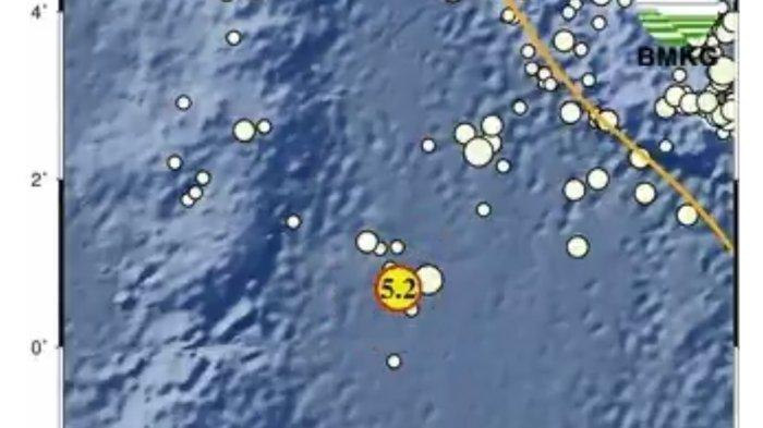 Titik koordinat gempa terjadi pada 0,94 lintang utara dan 93,10 bujur timur.