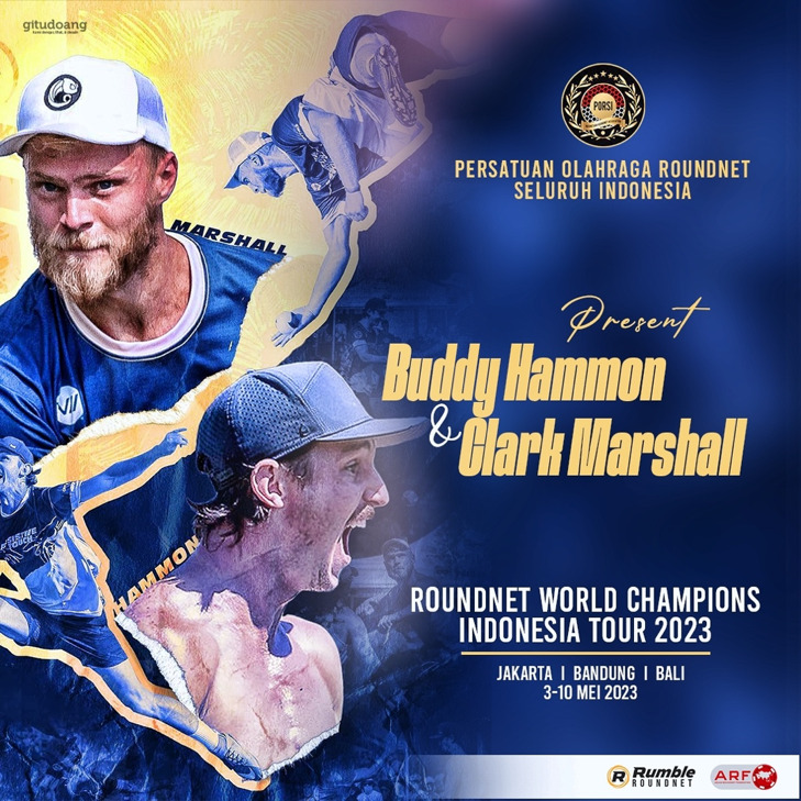 “Buddy Hammon & Clark Marshall akan mengunjungi 3 kota, Jakarta, Bandung dan Bali. Selama di Indonesia, dia akan memberikan Coaching Clinic dan pertandingan eksebisi melawan Timnas Roundnet Indonesia,” tegas Genta Fajar Ketua Umum PB PORSI.