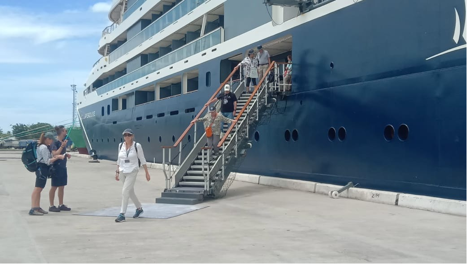Dia mengatakan kapal pesiar MV. LE LAMPEROUSE itu memiliki panjang 100 meter dengan bobot 9976 Gross Register Tonage (GRT).