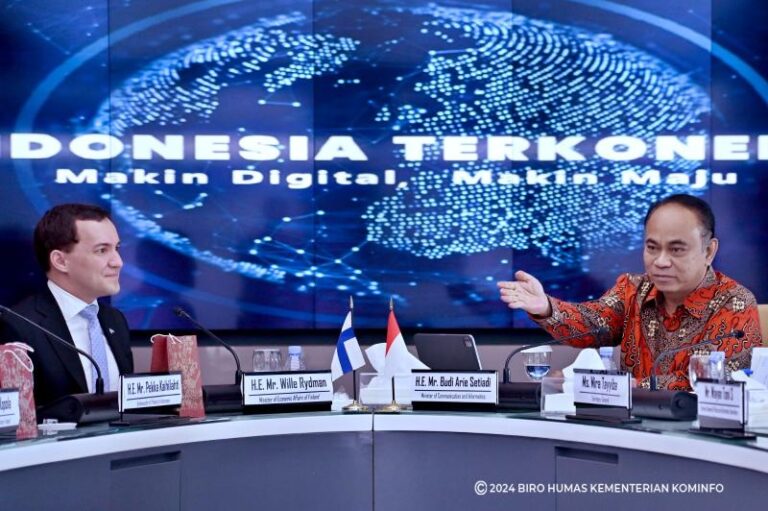 Kampiunnews | Jakarta – Menteri Komunikasi dan Informatika Budi Arie Setiadi menerima kunjungan Menteri Kerja Sama Ekonomi Finlandia Wille Rydman di Kantor Kementerian Kominfo, Jakarta Pusat, Selasa (30/01/2024). Menteri Budi Arie menyatakan Indonesia dan Finlandia membahas kerja sama mengenai infrastruktur digital.