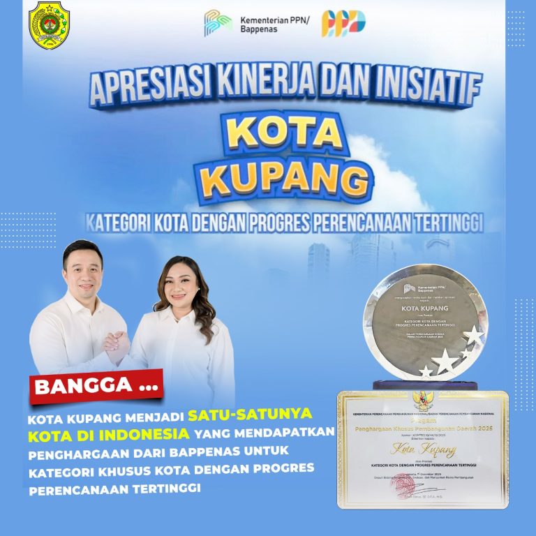 Kampiunnews|Jakarta – Pemerintah Kota Kupang kembali menorehkan prestasi di tingkat nasional. Kementerian Perencanaan Pembangunan Nasional/Badan Perencanaan Pembangunan Nasional (PPN/Bappenas) memberikan Apresiasi Khusus Kinerja dan Inisiatif Pembangunan Daerah kepada Kota Kupang dalam kategori daerah dengan progres perencanaan tertinggi.