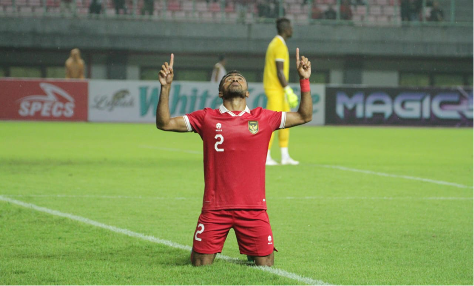 Bermain di hadapan superter setianya di Stadion Patriot, Bekasi, anak asuh Shin Tae-yong langsung tampil menekan. Umpan lambung Stefano Lilipaly, diselesaikan dengan ciamik Yance Sayuri. Skor berubah menjadi 1-0 untuk keunggulan Indonesia.