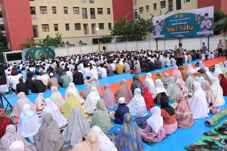Kampiunnews | Jakarta – Polres Metro Jakarta Barat menggelar shalat Idul Adha 1445 H / 2024 M bersama warga masyarakat sekitar di lapangan hijau Polres Metro Jakarta Barat, Senin, 17/6/2024.