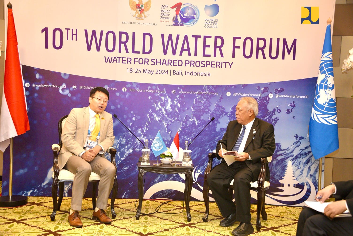 Kampiunnews | Bali – Menteri Pekerjaan Umum dan Perumahan Rakyat (PUPR) Basuki Hadimuljono melakukan pertemuan bilateral dengan Director Land and Water Division Food and Agriculture Organization atau Organisasi Pangan dan Pertanian Perserikatan Bangsa-Bangsa (PBB) Lifeng Li di Bali Nusa Dua Convention Center, Jumat (24/5/2024). Pertemuan ini merupakan agenda bilateral terakhir Menteri Basuki selama perhelatan World Water Forum ke-10 yang diselenggarakan di Bali pada 18-25 Mei 2024.