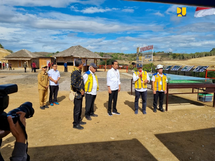 Kampiunnews | Nagekeo – Menteri Pekerjaan Umum dan Perumahan Rakyat (PUPR) Basuki Hadimuljono mendampingi Presiden Joko Widodo meninjau progres pembangunan Bendungan Mbay di Kabupaten Nagekeo, Provinsi Nusa Tenggara Timur (NTT), Selasa (5/12/2023). Pembangunan bendungan telah memasuki tahap breakthrough terowongan pengelak dengan progres konstruksi 27%.