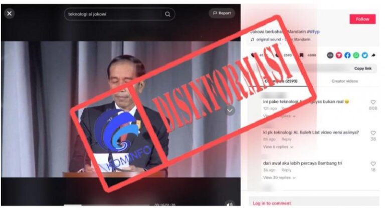 “Secara visual, video tersebut identik, tetapi telah disunting sedemikian rupa yang diduga memanfaatkan teknologi artificial intelligence (AI) deepfake,” ungkapnya.