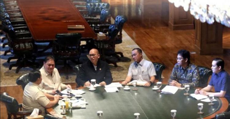 Pertemuan tersebut dihadiri antara lain oleh Menteri Keuangan Purbaya Yudhi Sadewa, Menteri Sekretaris Negara Prasetyo Hadi, dan Menteri Koordinator Bidang Perekonomian Airlangga Hartarto.
