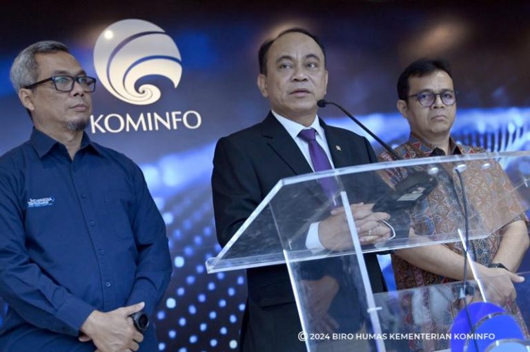 Saat memberikan keterangan kepada media, Menkominfo Budi Arie Setiadi didampingi Wamenkominfo Nezar Patria, Dirjen Informasi dan Komunikasi Publik Usman Kansong dan Staf Khusus Menteri Daniel Hutagalung.
