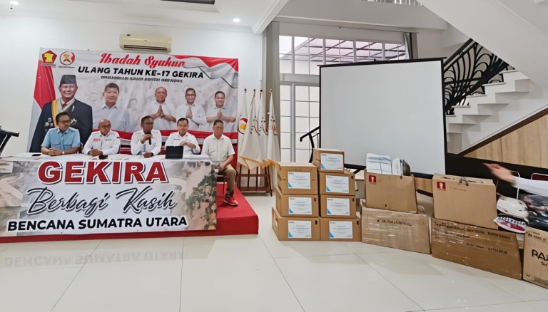 Kampiunnews|Jakarta – Gerakan Kristiani Indonesia Raya (Gekira), organisasi sayap Partai Gerindra, memberangkatkan bantuan kemanusiaan bagi warga terdampak banjir dan longsor di sejumlah wilayah di Pulau Sumatera. Pelepasan bantuan berlangsung di Sekretariat PP Gekira, Cempaka Putih Timur, Jakarta Pusat, Kamis.