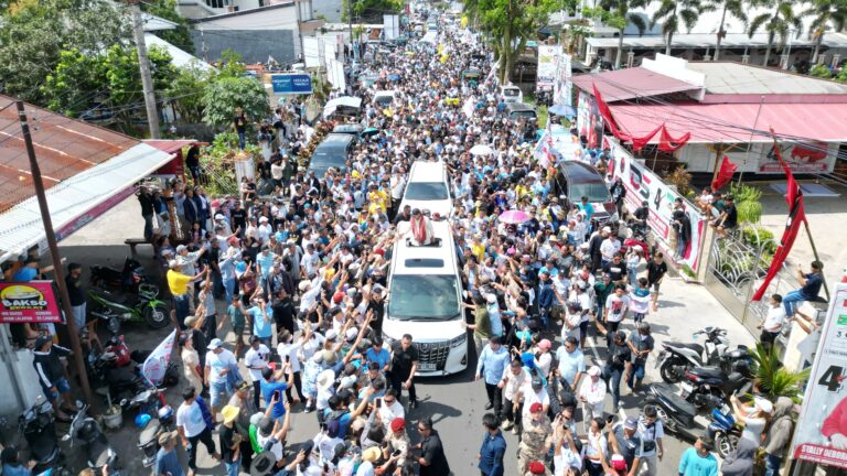Kampiunnews | Langowan – Calon presiden nomor urut 2, Prabowo Subianto menyapa puluhan ribu masyarakat Sulawesi Utara dalam kunjungannya ke Langowan, Kabupaten Minahasa, Sulawesi Utara, Senin kemarin