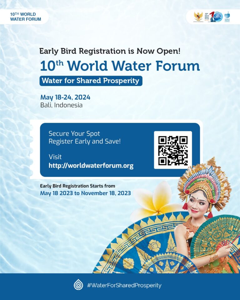 Kampiunnews | Jakarta – Sehubungan dengan penyelenggaraan 10th World Water Forum 2024 di Bali, Pemerintah Indonesia mengajak seluruh elemen masyarakat global untuk mengikuti pendaftaran early bird dengan penawaran harga resgitrasi lebih murah. Fase pendaftaran ini dibuka pada 18 Mei hingga 18 November 2023.
