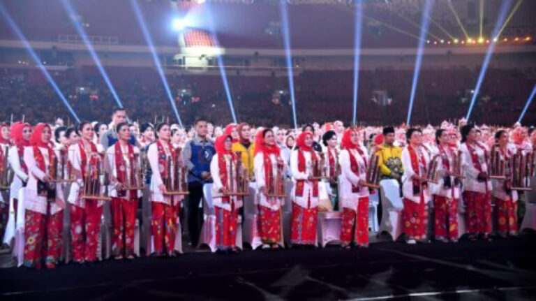 Kampiunnews | Jakarta – Presiden Joko Widodo dan Wakil Presiden Ma’ruf Amin turut hadir dan menyaksikan pemecahan rekor dunia Guinness World of Record untuk pergelaran angklung terbesar di dunia. Upaya pemecahan rekor tersebut digelar di Stadion Utama Gelora Bung Karno, Jakarta, pada Sabtu, 5 Agustus 2023.