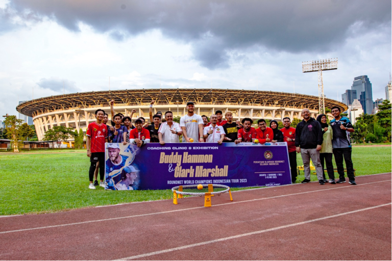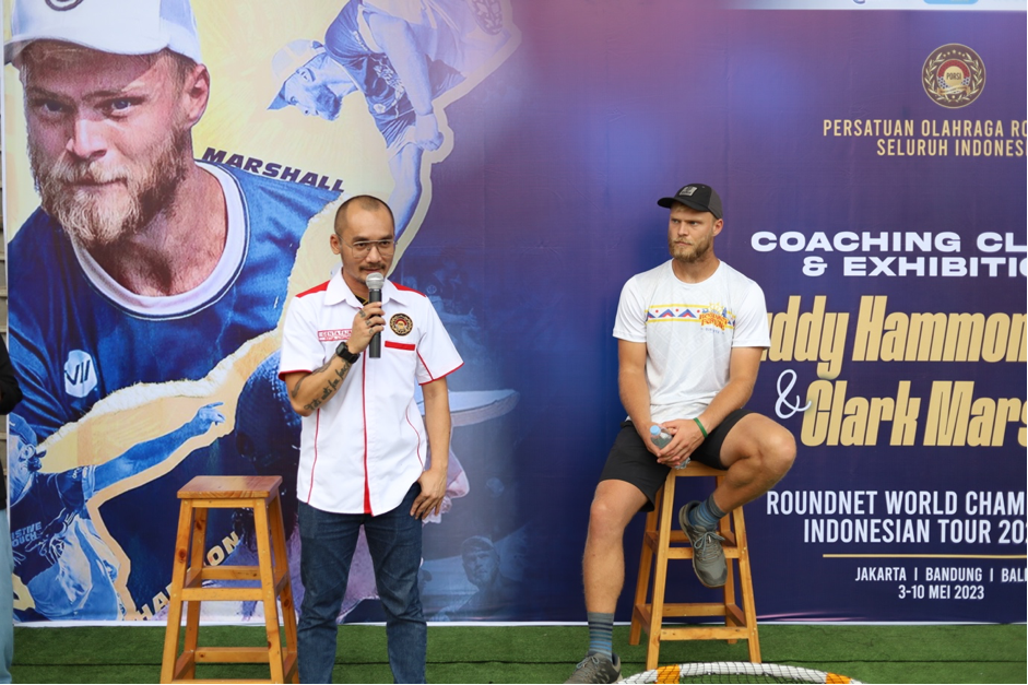 “Kehadirannya Buddy Hammon & Clark Marshall di 3 kota besar Jakarta, Bandung dan Bali untuk menggairahkan Roundnet dan memberikan couching clinik, dalam program Roundnet World Champions Indonesian Tour 2023,” tutur Genta Fajar Ketua Umum PB PORSI di GBK Senayan (4/5).