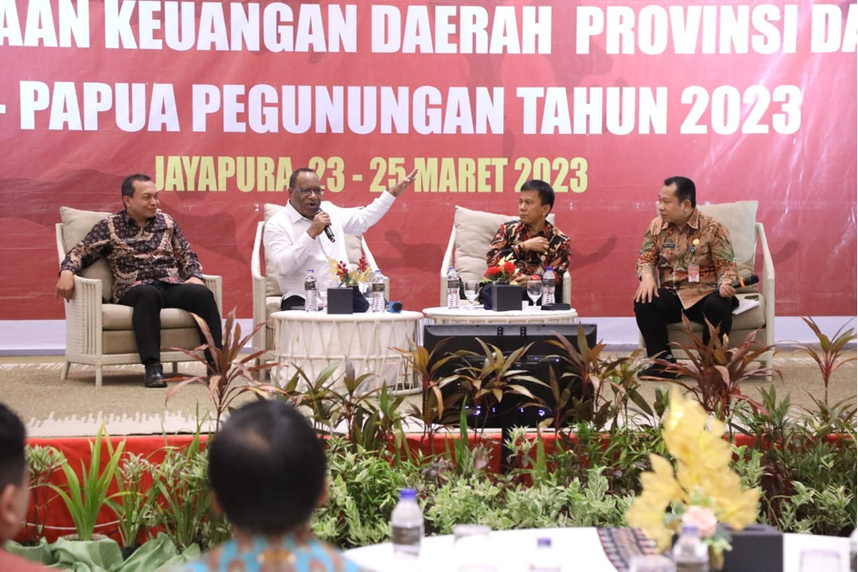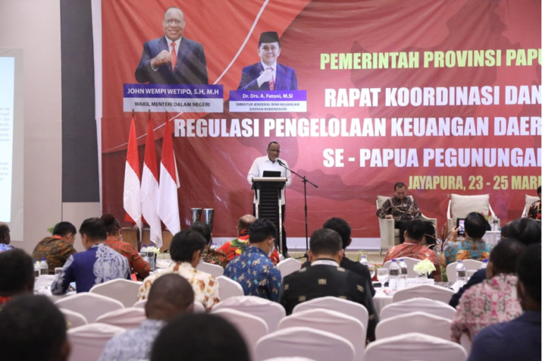 Kampiunnews |Jayapura – Wakil Menteri Dalam Negeri (Wamendagri) John Wempi Wetipo mendorong empat Daerah Otonomi Baru (DOB) di Papua menggunakan alokasi anggaran yang diberikan untuk mempercepat pembangunan. Hal itu disampaikan Wempi di hadapan awak media usai Rapat Koordinasi (Rakor) dan Sosialisasi Regulasi Pengelolaan Keuangan Daerah Provinsi dan Kabupaten se-Papua Pegunungan di Hotel Suni Abepura, Jayapura, Papua, Jumat (24/3/2023).
