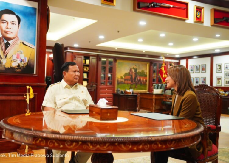Dalam unggahan tersebut, Prabowo bersama Najwa Shihab tampak asyik berdiskusi di ruang kerja Prabowo.